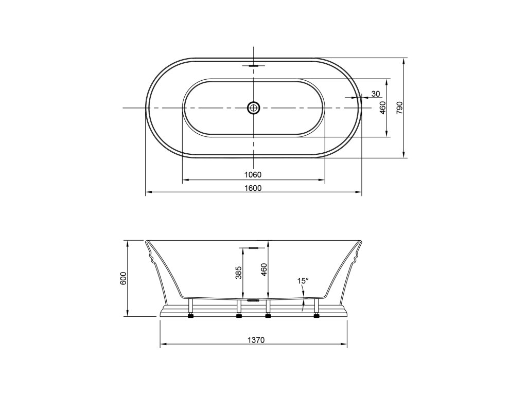 Aqualine ANTIK volně stojící retro vana, 160x79cm, bílá