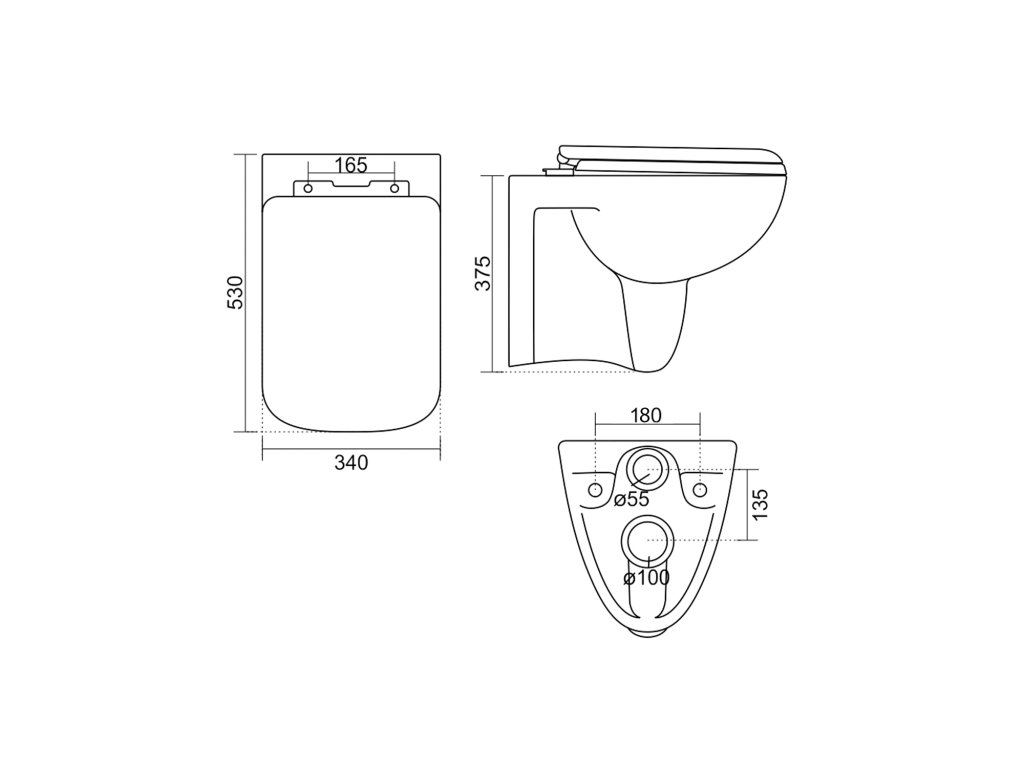 Aqualine SPAZIA závěsná WC mísa 34x53cm, bílá