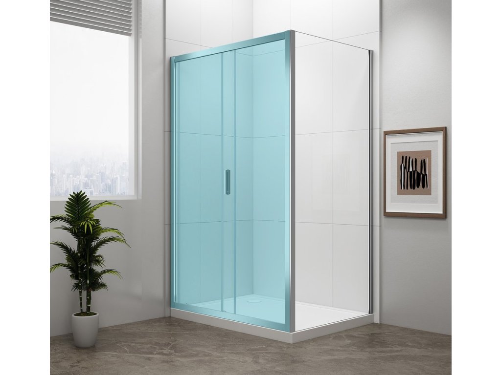 - Čtvercové zástěny s dvoudílnými posuvnými dveřmi, rohový vstup