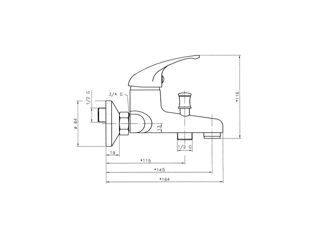 EBS Astra Baterie vanová nástěnná, bez sprchového setu