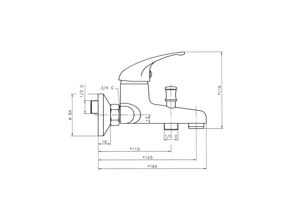 EBS Astra Baterie vanová nástěnná, rozteč 10 cm, bez sprchového setu
