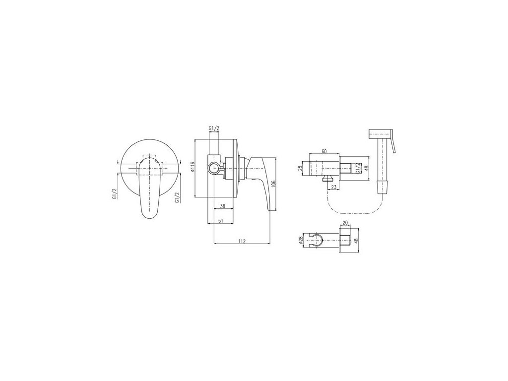 EBS Baterie bidetová podomítková se sprškou, chrom BID004CR
