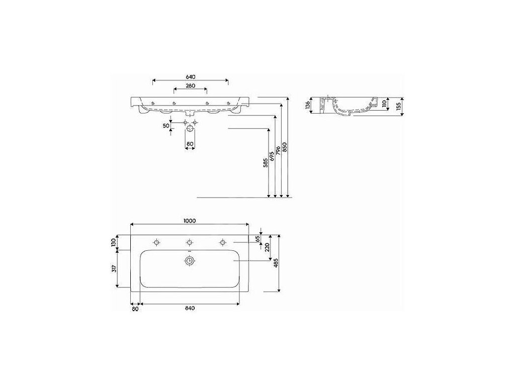 EBS by Geberit Modo Umyvadlo 100 cm s otvorem, bílá L31900000
