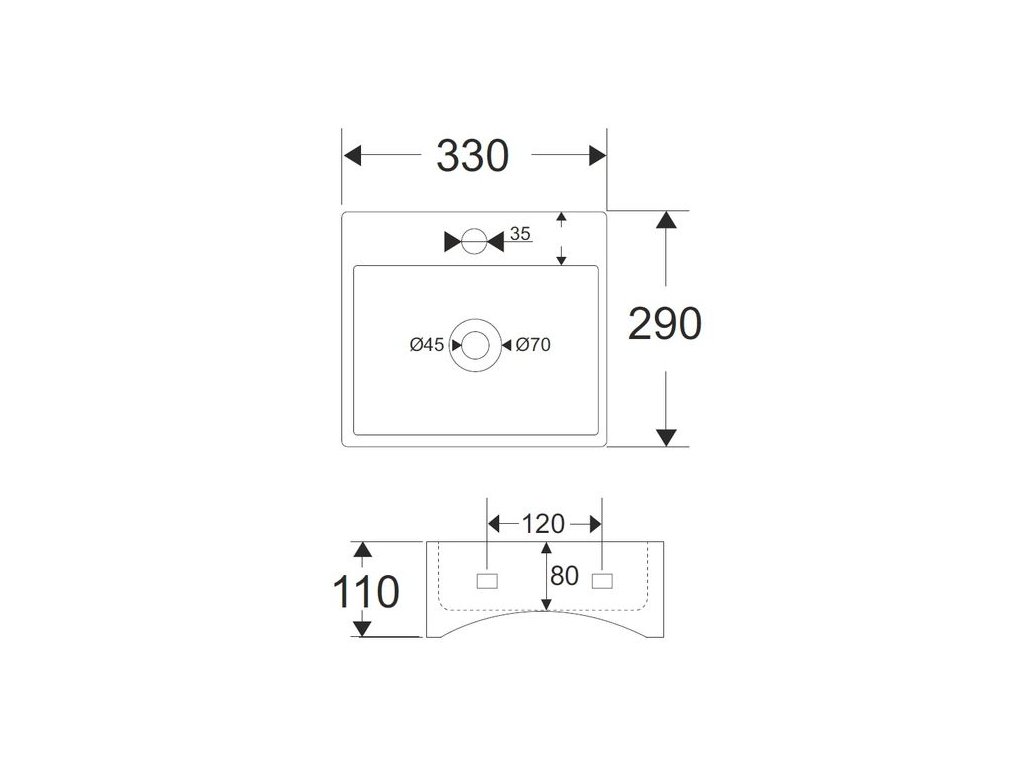 - keramické umývátko je součástí balení - rozměr: 33 x 29 x 9,5 cm (celková hloubka)