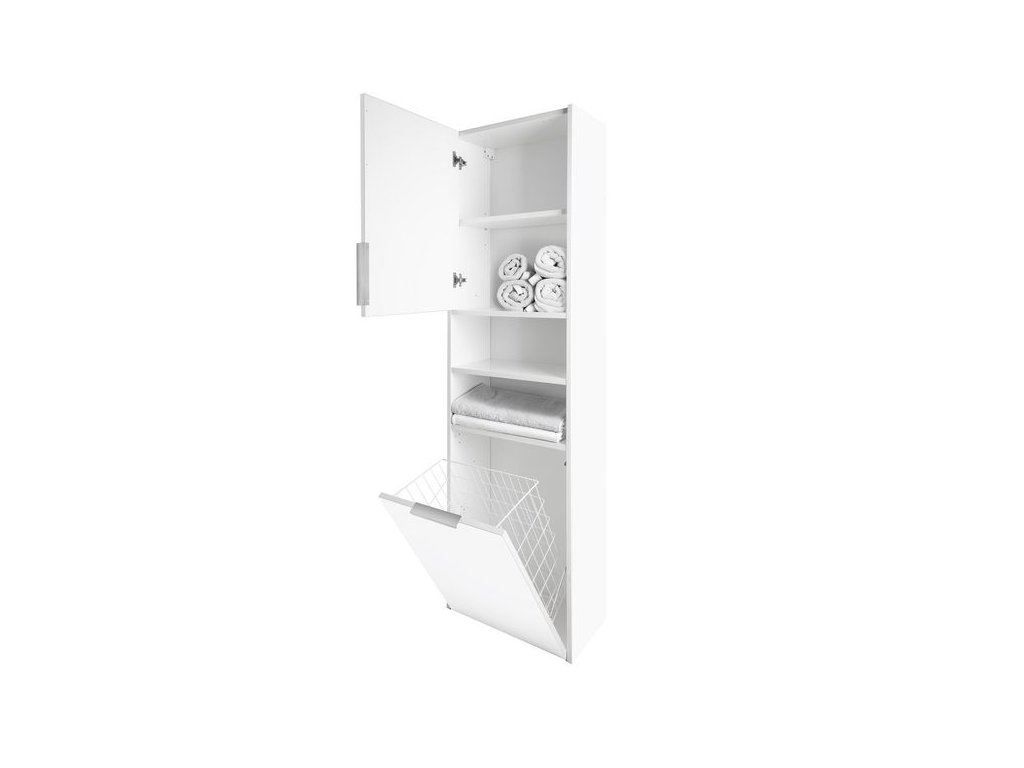 EBS City Vysoká skříňka 55 x 180 cm s košem na prádlo, bílá lesk