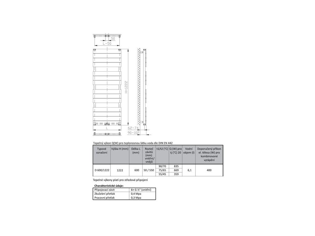 EBS Daren D60122BM Radiátor kombinovaný, 60x122,2 cm, černá