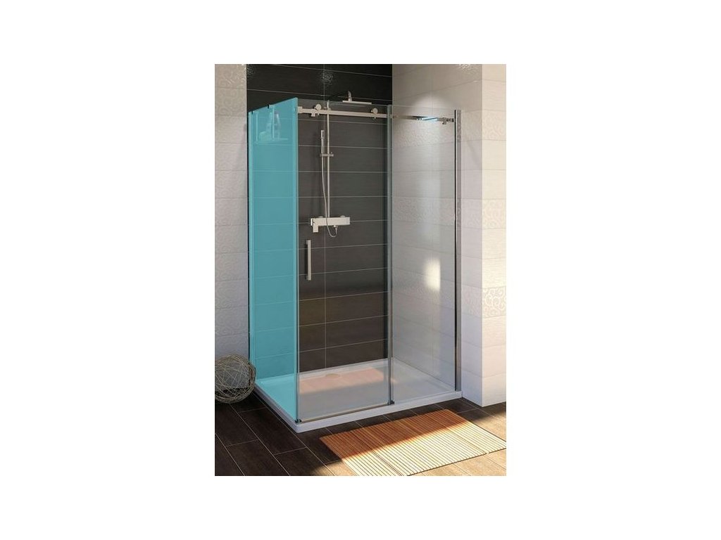 Masivní ložisková kola zaručuji bezvadný chod na mnoho let. Při výrobě dveří je použito bezpečnostní sklo o síle 8 mm s oboustrannou povrchovou úpravou COATED GLASS pro snadnou údržbu. Rozstřiku vody zabraňuje prahová lišta a magnetické těsnění. Dveře jsou děleny na část posuvnou a část pevnou. Sklo dveří je volně zavěšené bez spodního vodícího profilu.