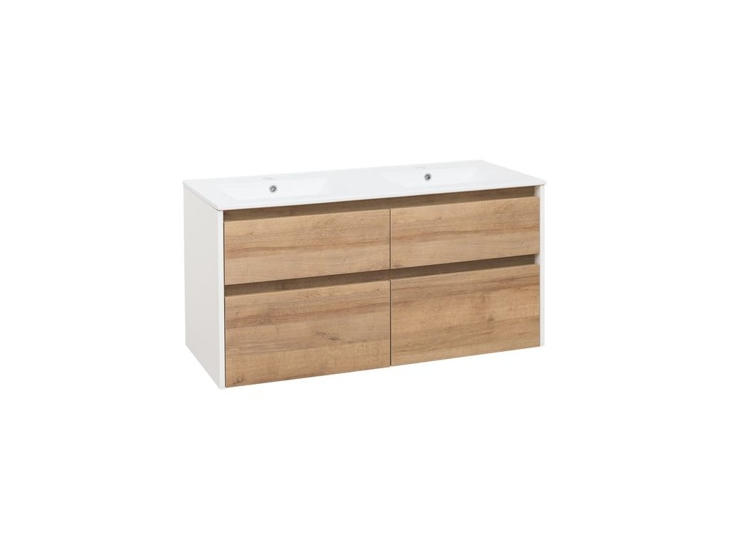 EBS Duomo Skříňka a keramické umyvadlo Slim 121 cm, bílá lesklá/dub Riviera