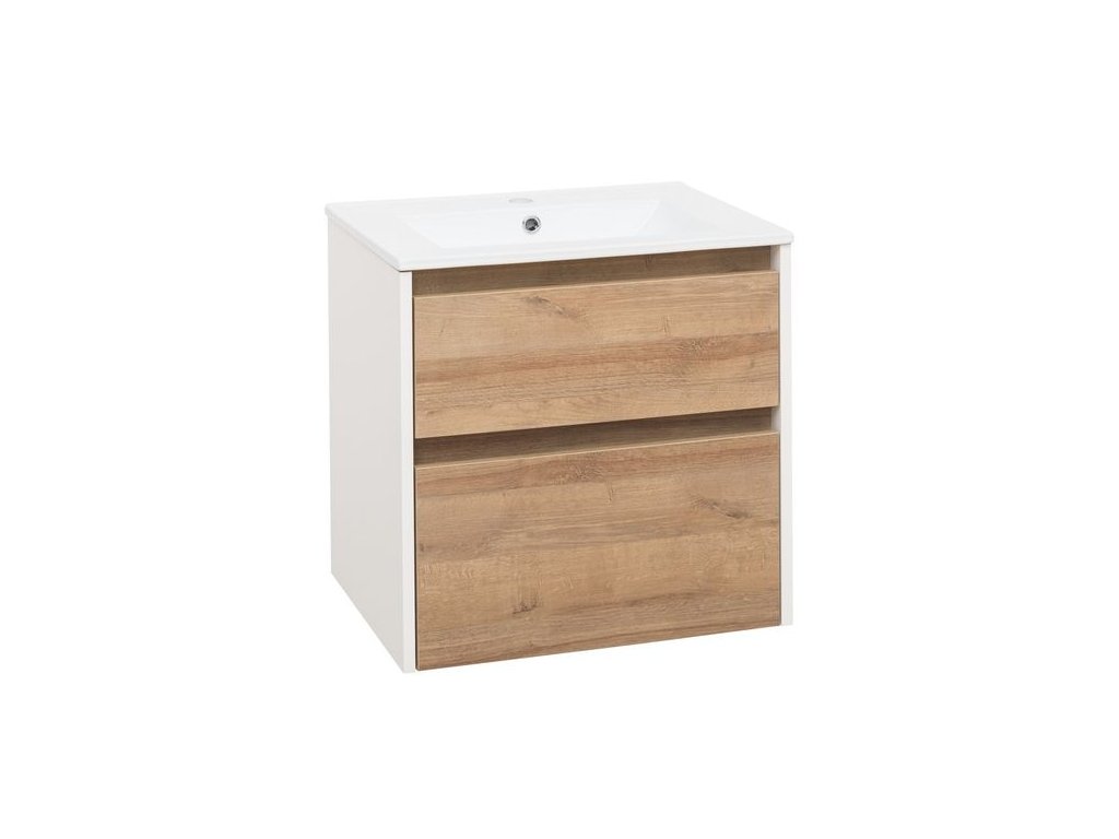 EBS Duomo Skříňka a keramické umyvadlo Slim 61 cm, bílá lesklá/dub Riviera