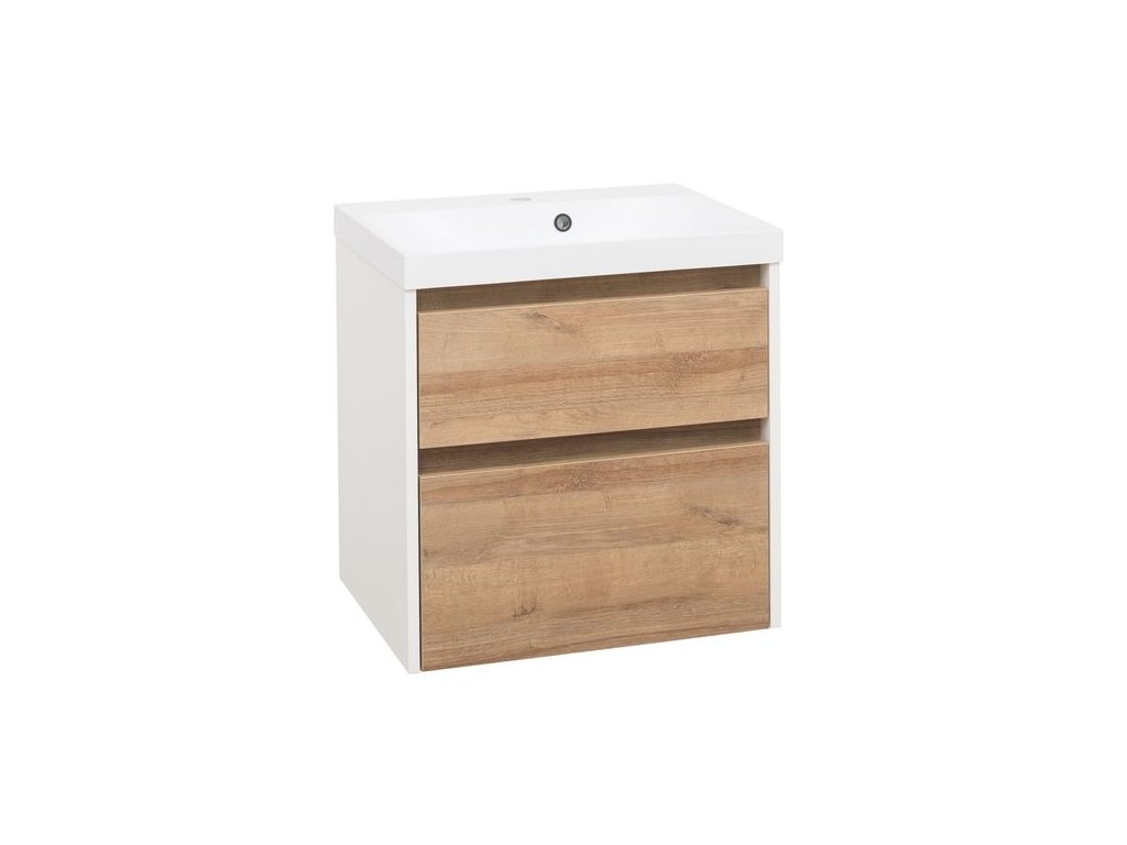 EBS Duomo Skříňka a umyvadlo 61 cm, bílá lesklá/dub Riviera