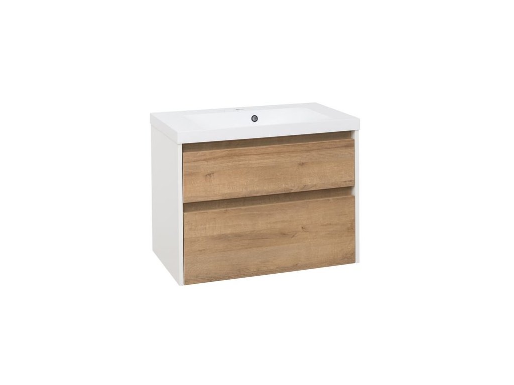 EBS Duomo Skříňka a umyvadlo 81 cm, bílá lesklá/dub Riviera
