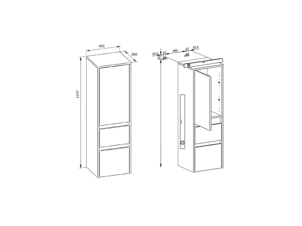 - skříňka má 2 zásuvky a 1 dvířka - uvnitř dvířek jsou dvě poličky