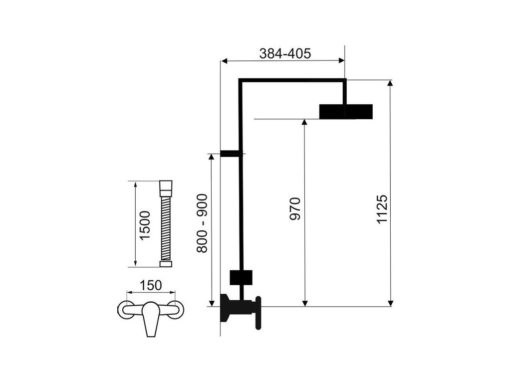 Kvalitní a odolná keramická kartuše 35 mm. Prvotřídní provedení černá-mat. Set obsahuje nástěnnou sprchovou baterii s vrchním vývodem a roztečí 150 mm, hadici 150 cm, hlavovou sprchu s průměrem 200 mm, ruční sprchu a posuvný jezdec s držákem ruční sprchy. Set umožňuje nastavit i odchýlení vrchního úchytu od stěny v rozmezí 60 - 80 mm.