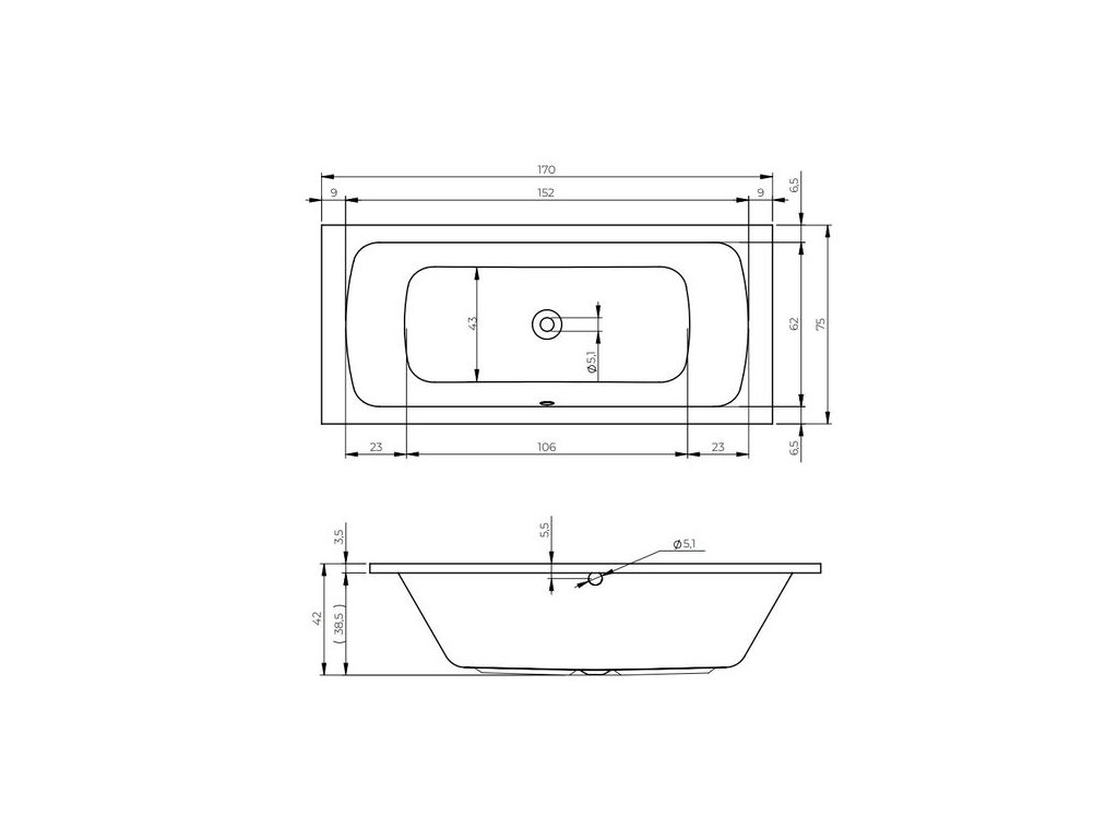 - otvor pro výpust uprostřed