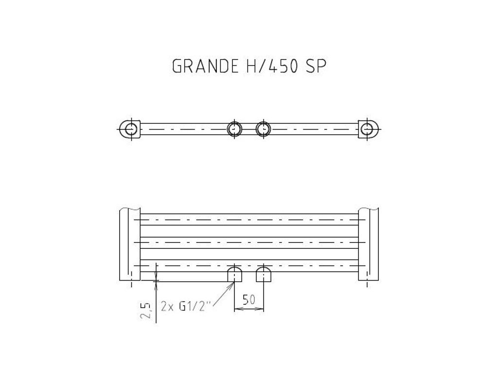 Otopný žebřík značky EBS ze série Grande. Vhodný pro zapojení do otopné soustavy.