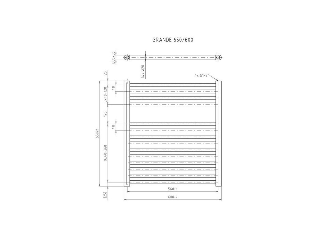 Otopný žebřík značky EBS ze série Grande. Vhodný pro zapojení do otopné soustavy.