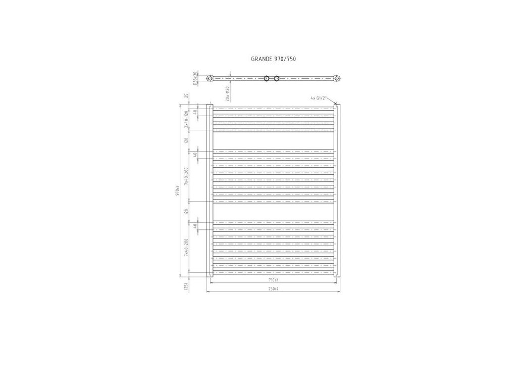 Otopný žebřík značky EBS ze série Grande. Vhodný pro zapojení do otopné soustavy.
