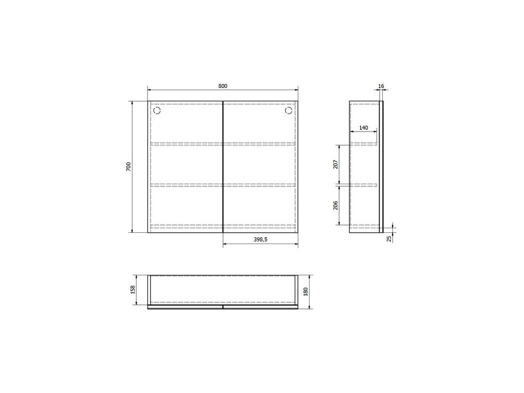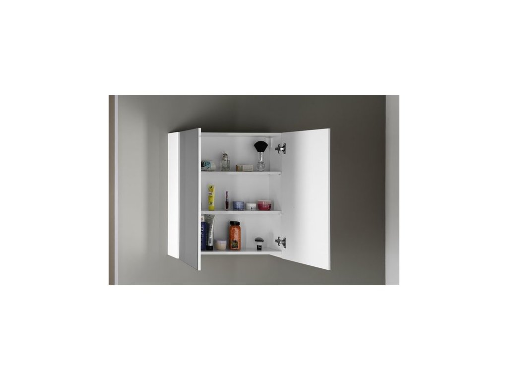 Dvoukřídlá bílá galerka se 2 nastavitelnými policemi. Závěsná, vhodná do malých koupelen.