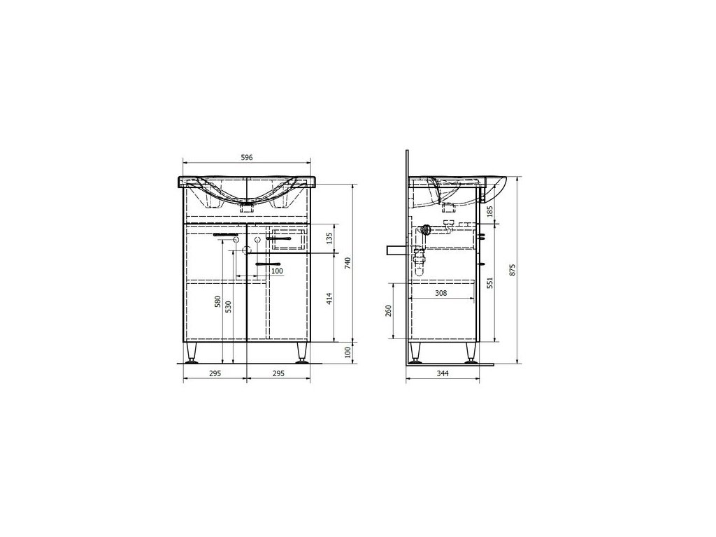 Rozměry jsou udávány včetně nožiček 10 cm a umyvadla. Skříňka bez umyvadla a nožiček má rozměr 59,6 x 74 x 31,8 cm (šířka x výška x hloubka). 4 kovové nožičky jsou v ceně a součástí balení.Doplňkové parametry