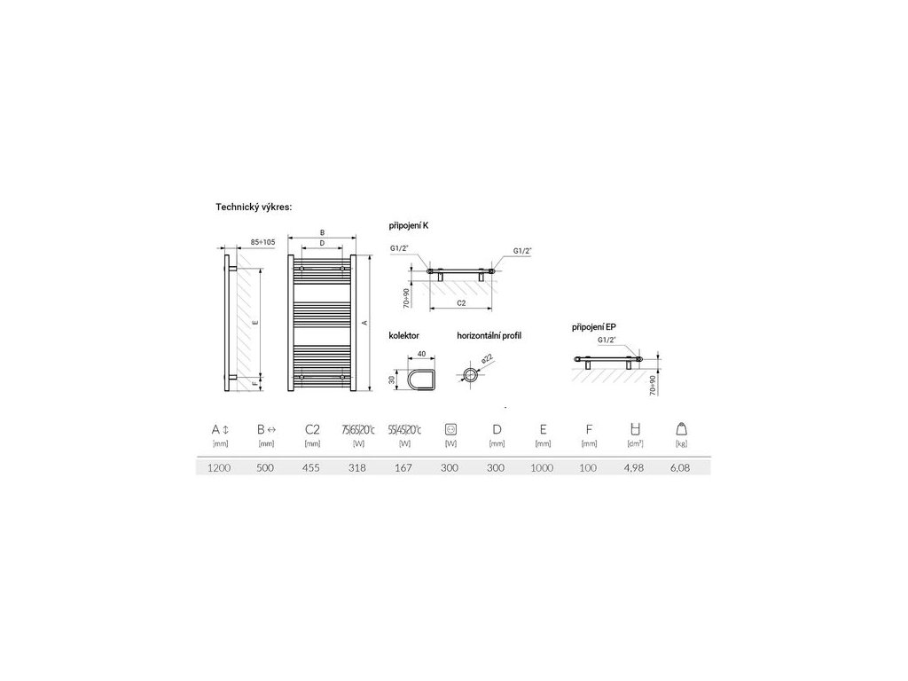 EBS LEO G50120SCR Radiátor elektrický 50x120 cm, tyč S vpravo, chrom