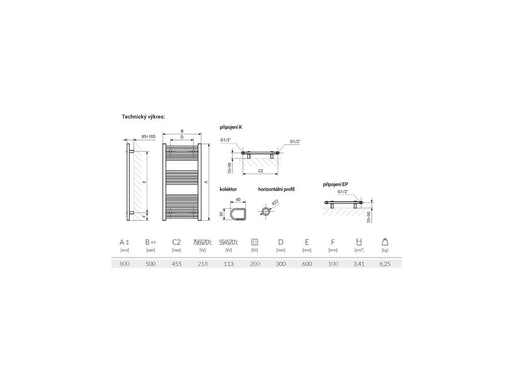 EBS LEO G5080SCR Radiátor elektrický 50x80 cm, tyč S vpravo, chrom