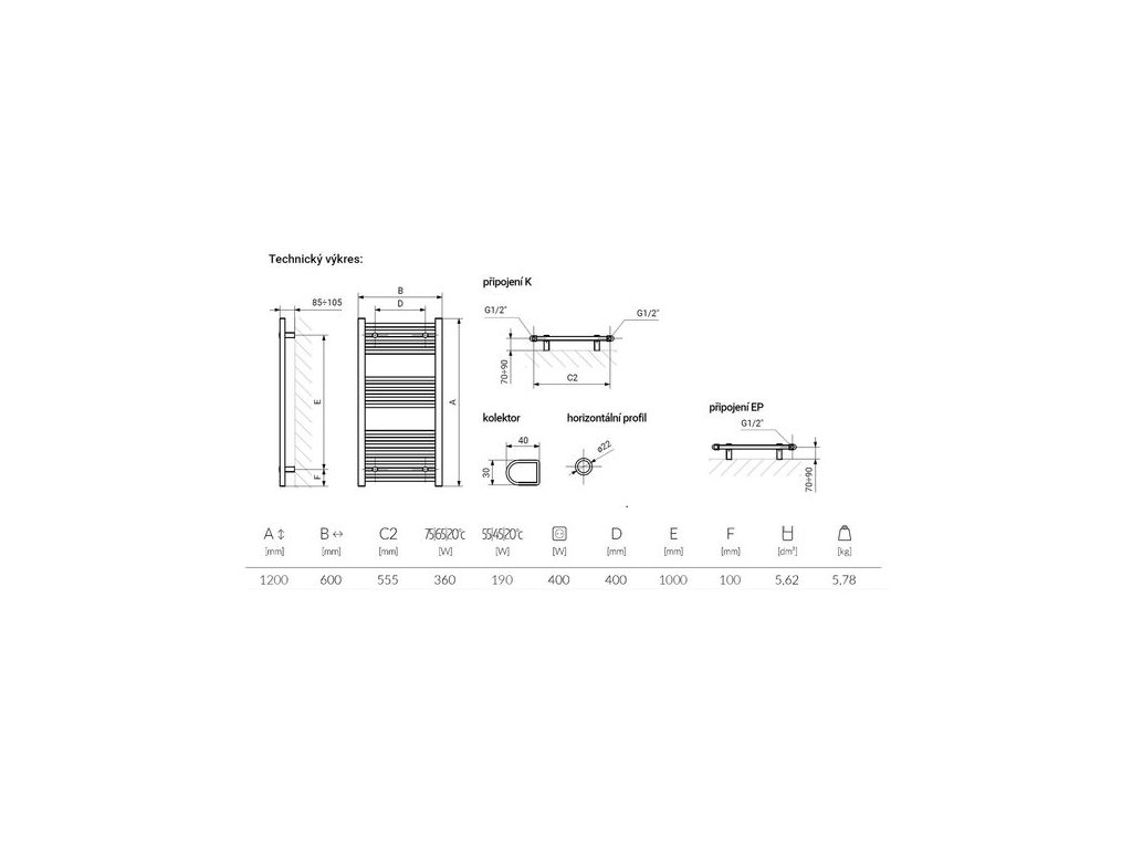 EBS LEO G60120MCR Radiátor elektrický 60x120 cm, tyč M vpravo, chrom