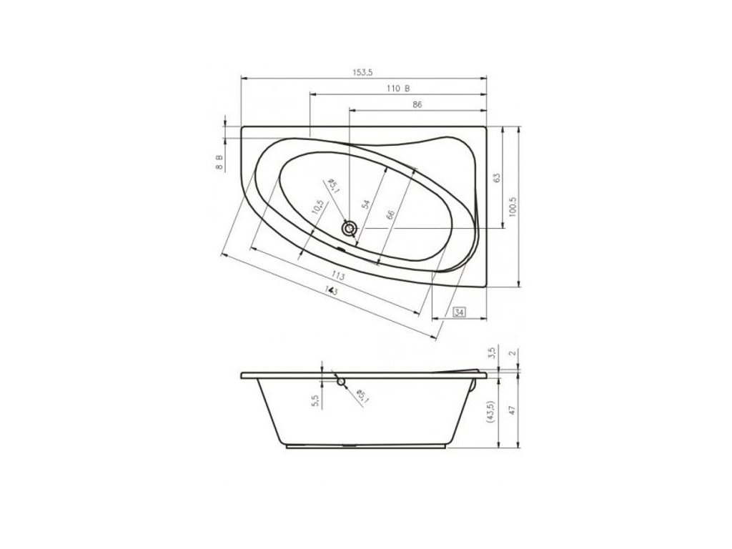 Rohová asymetrická bílá akrylátová vana s příjemným teplým povrchem. Nohy k vaně je nutné dokoupit zvlášť.
