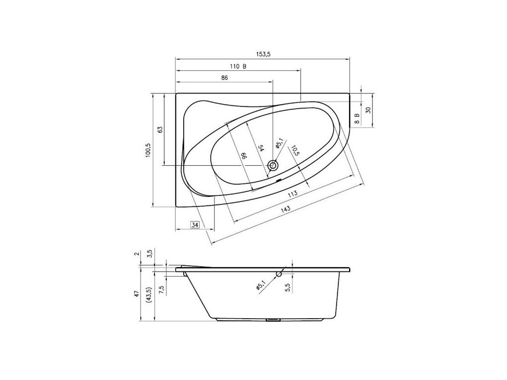 EBS Levia Vana 153,5x100 cm, pravá, bez noh