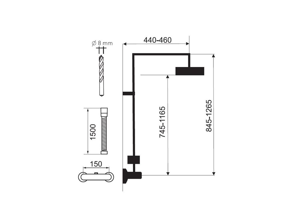 - systém je výškově nastavitelný na 845 - 1265 mm