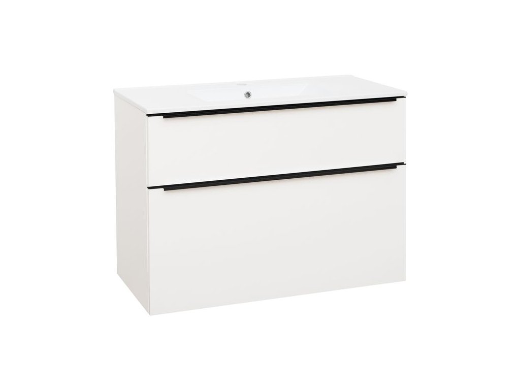 EBS Nevio B Skříňka s černým úchytem + umyvadlo Slim 101 cm, bílá lesklá