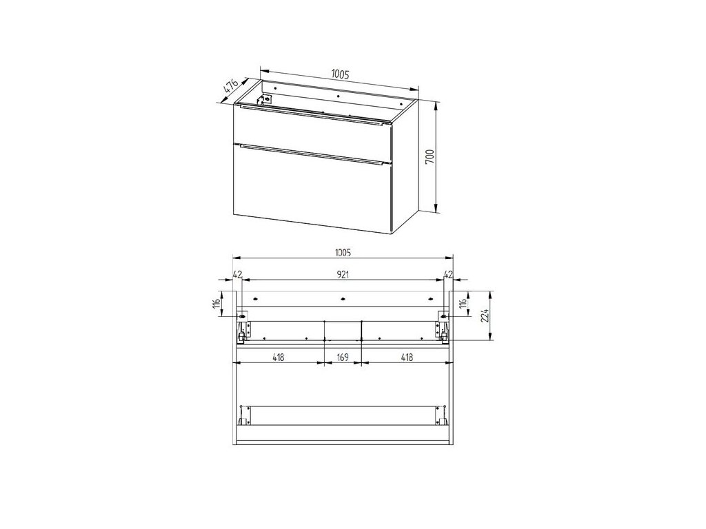 - vnitřní výška horního šuplíku je 13,7 cm a spodního šuplíku 39 cm