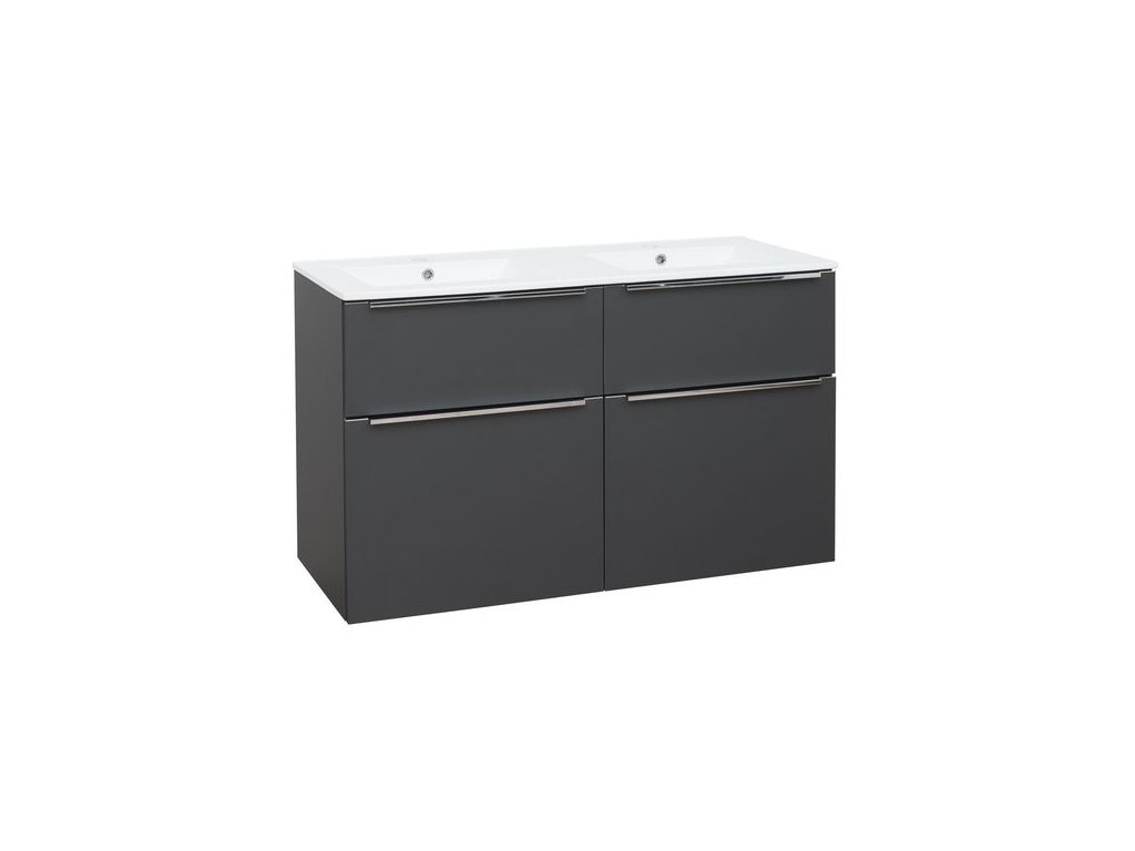 EBS Nevio Skříňka a keramické umyvadlo Slim 121 cm, antracitově šedá