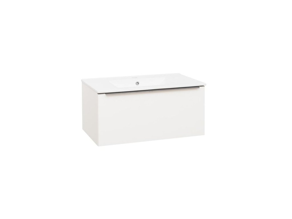EBS Nevio Skříňka a keramické umyvadlo Slim 81 cm, 1 zásuvka, bílá lesklá