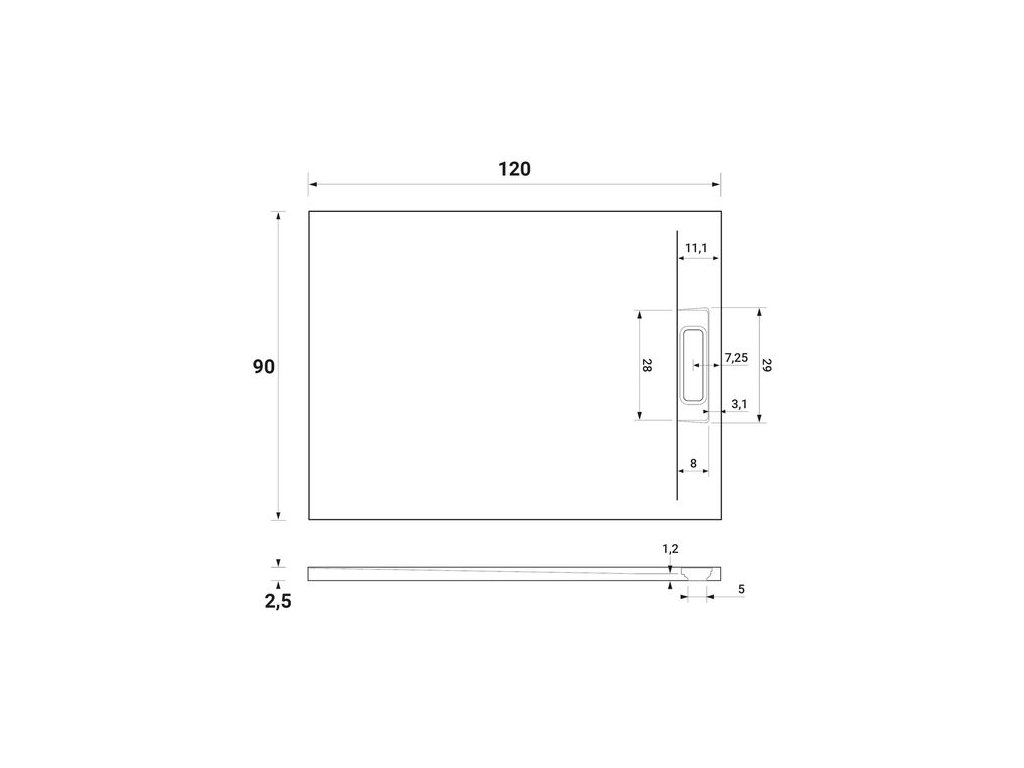- sifon není součástí balení a je nutné ho dokoupit, krytka sifonu s povrchem imitujícím břidlici je součástí balení