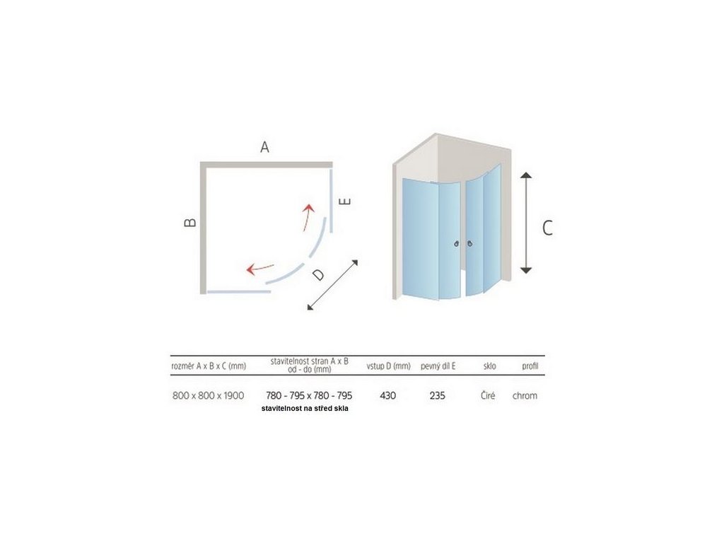 EBS Nova Sprchový kout čtvrtkruh 80x80 cm chrom