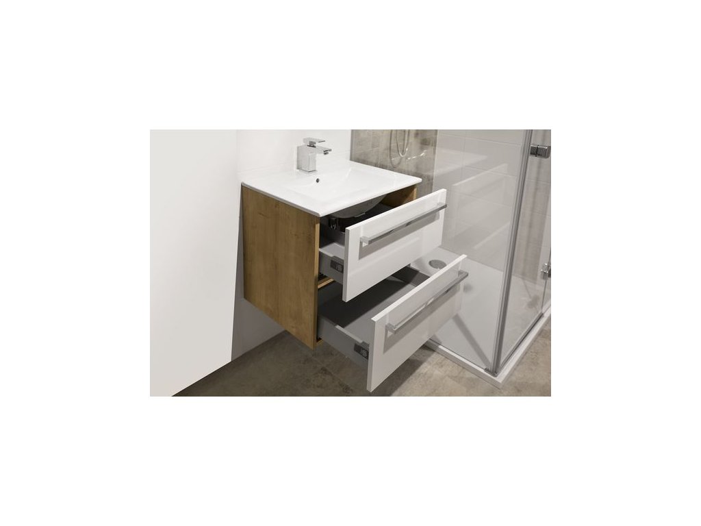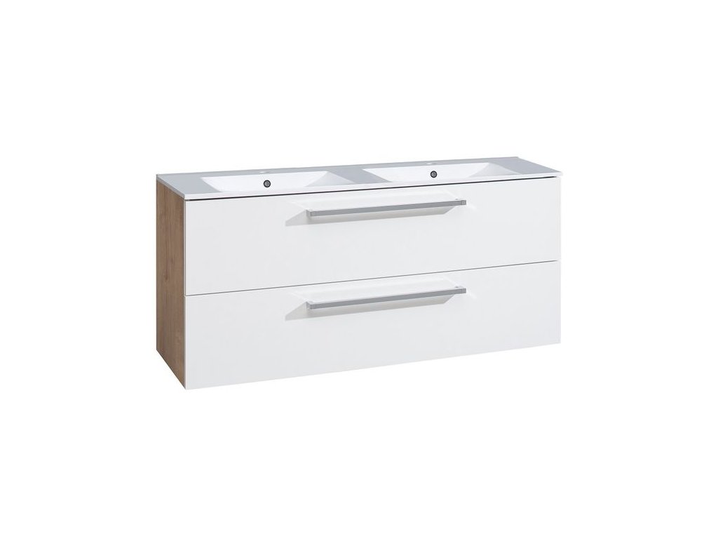 EBS Pure Skříňka s keramickým dvojumyvadlem slim 121 cm, bílá/dub