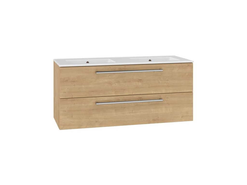 EBS Pure Skříňka s keramickým dvojumyvadlem slim 121 cm, dub Arlington