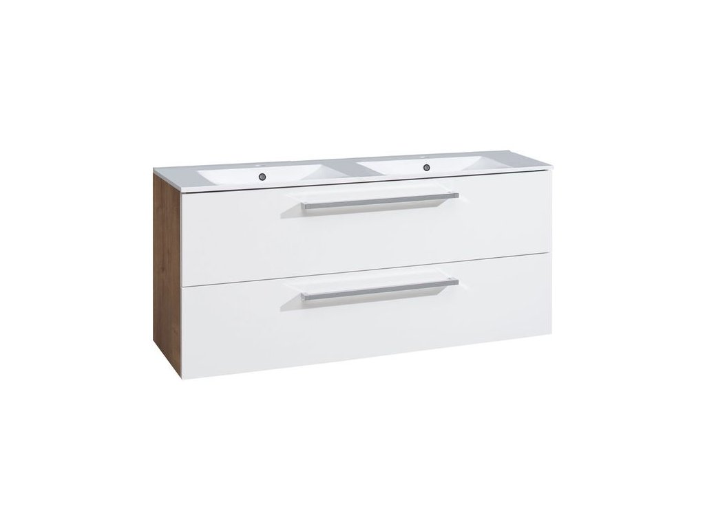 EBS Pure Skříňka s keramickým dvojumyvadlem slim 121 cm, dub Ribbeck/bílá