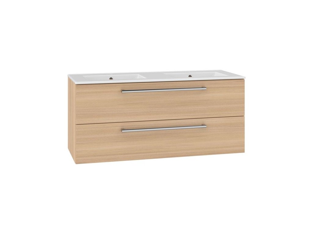 EBS Pure Skříňka s keramickým dvojumyvadlem slim 121 cm, dub sand barbera