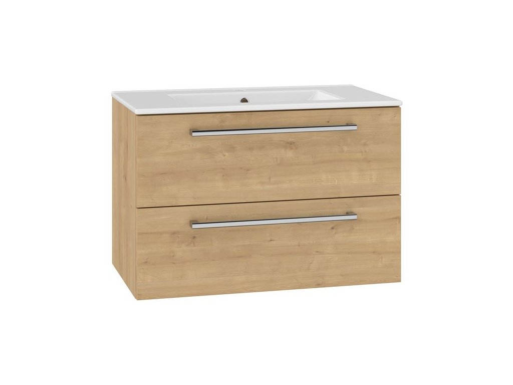 EBS Pure Skříňka s keramickým umyvadlem slim 81 cm, dub Arlington