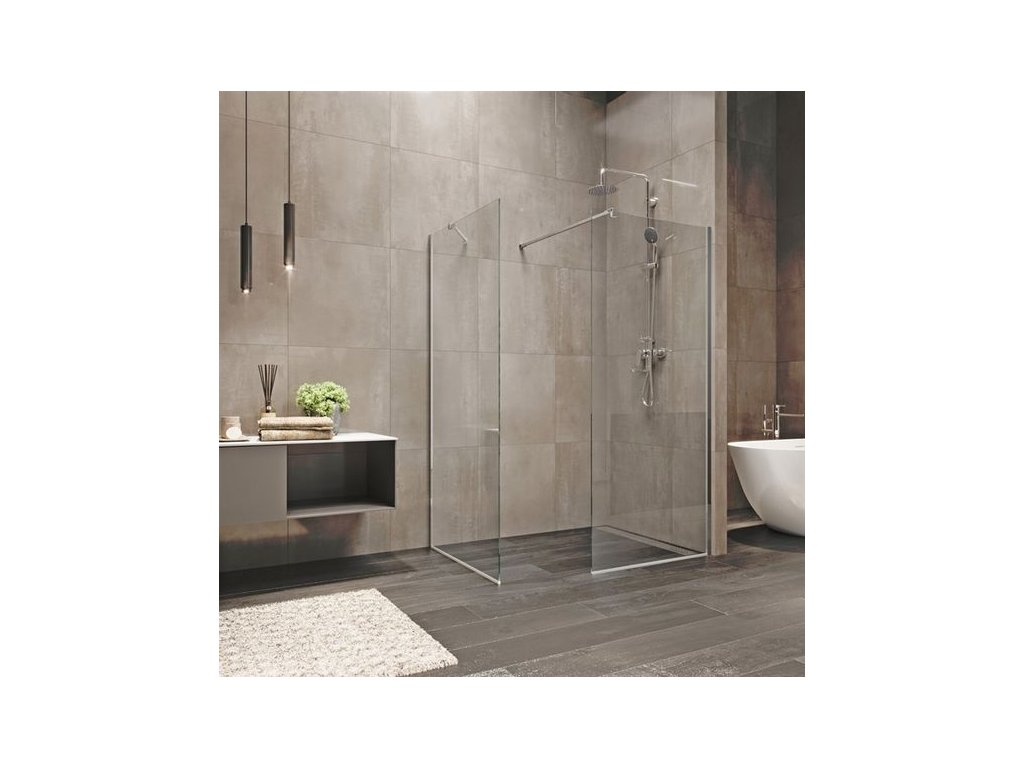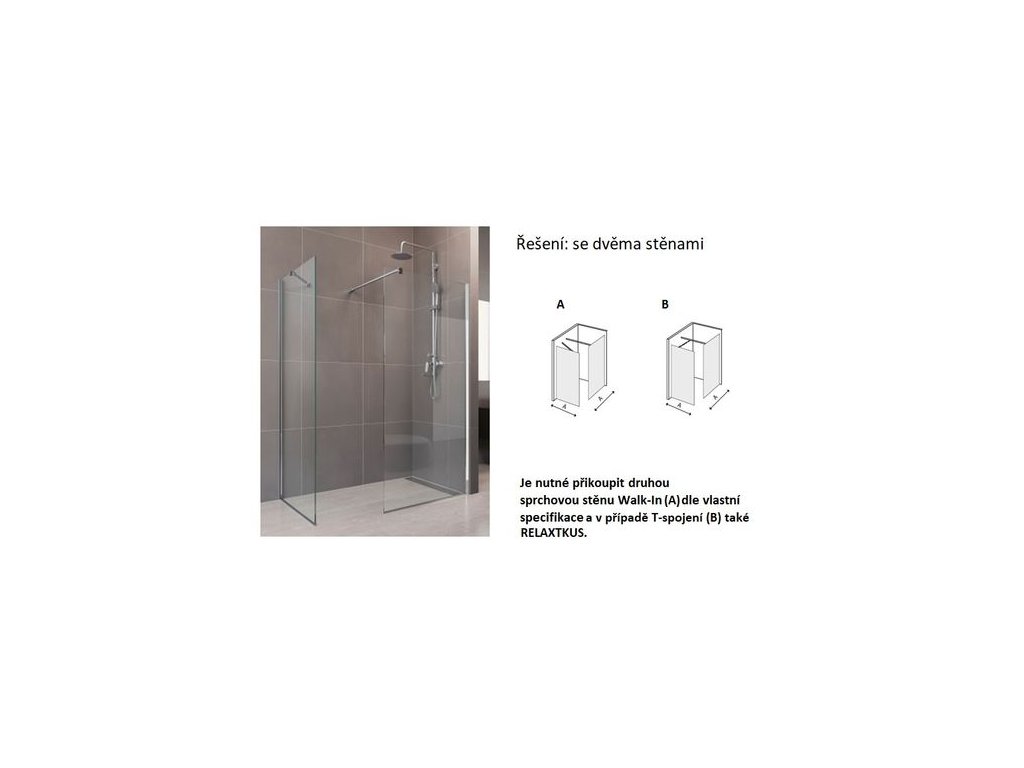 - 2x Walk-In Relax sprchovou stěnu z této série v požadovaných šířkách (např. 80 cm a 100 cm) - vzpěry jsou součástí.
