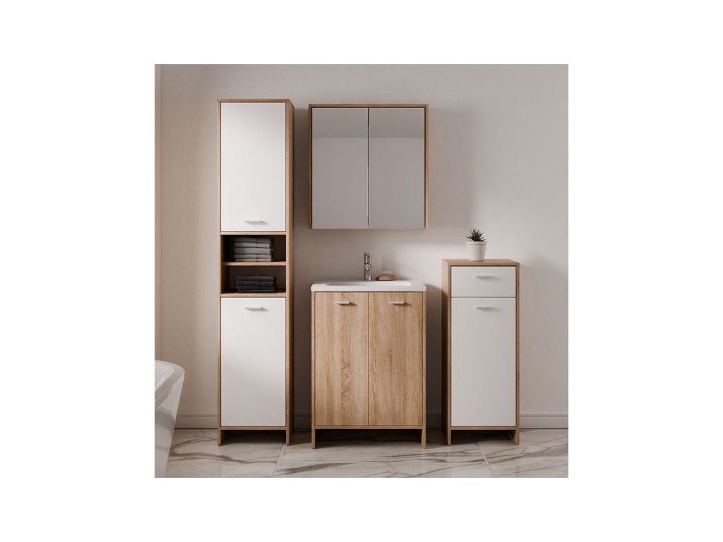 Jemné a decentní skříňky ze série Sofie nabízí k výběru 2 odstíny: bílá a dub sonoma. Skříňky jsou dodávané nesmontované (demont), pro snazší transport. Unikátní skříňka s výřezem pro umyvadlový sifon Vám nabízí jedinečnou možnost kombinace s umyvadly různých tvarů a rozměrů a dodá Vaší koupelně elegantní a vzdušný vzhled.