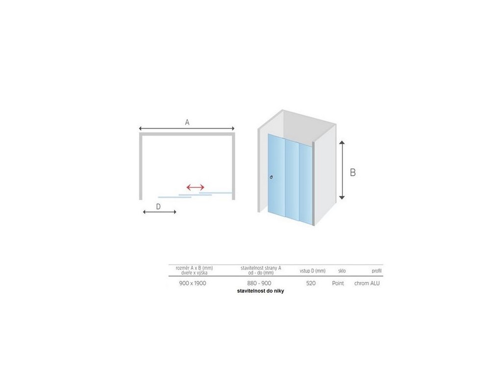 EBS Star Sprchové dveře trojdílné 90 cm chrom, sklo point