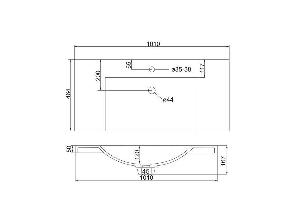 - viditelná hrana umyvadla 5 cm