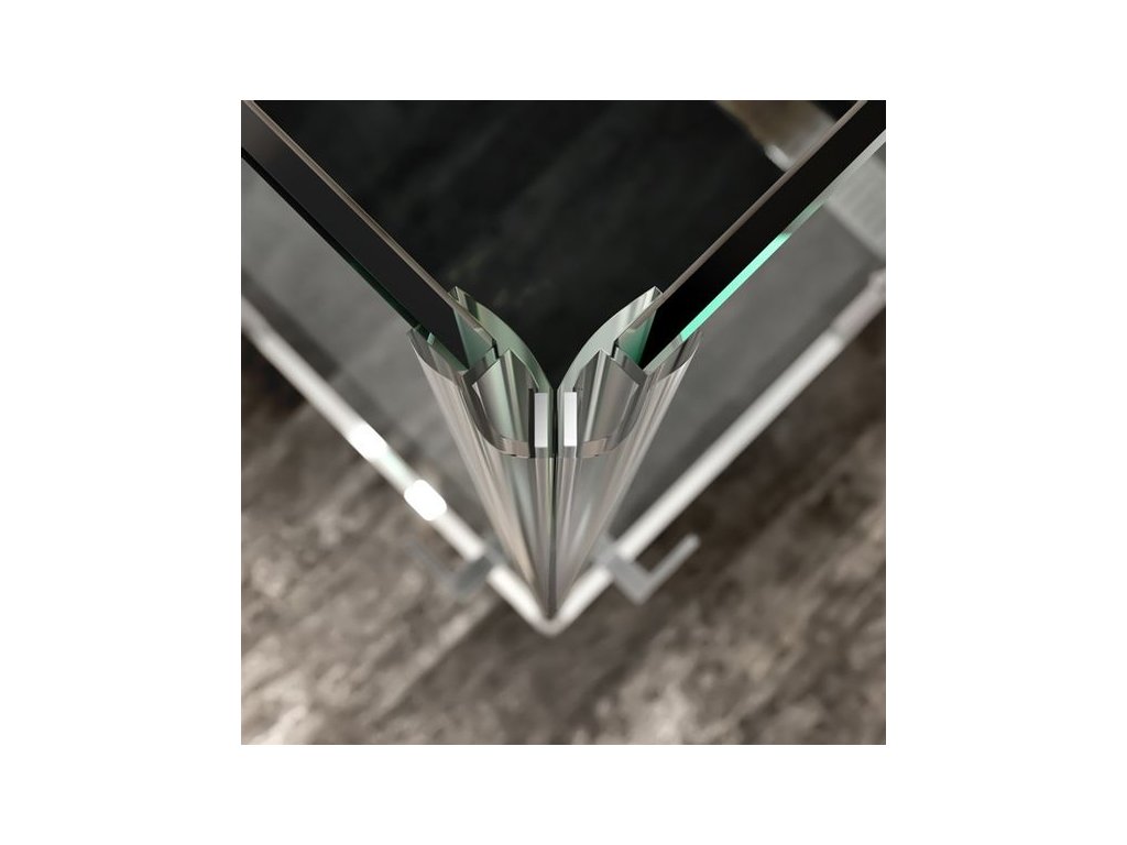 Sjednocený design madel a pantů je dokonalou ukázkou kvalitního dílenského zpracování. Chytré řešení pantů, které jsou z vnitřní strany zapuštěné do skla umožňuje setřít sklo stěrkou bez zadrhnutí, nebo vyhýbání. Stavitelnost pantů navíc umožňuje perfektní seřízení dveří. Zvedací systém pantů s aretací v krajních polohách umožňuje tiché komfortní otevírání bez nepříjemného drhnutí spodního těsnění o podlahu.