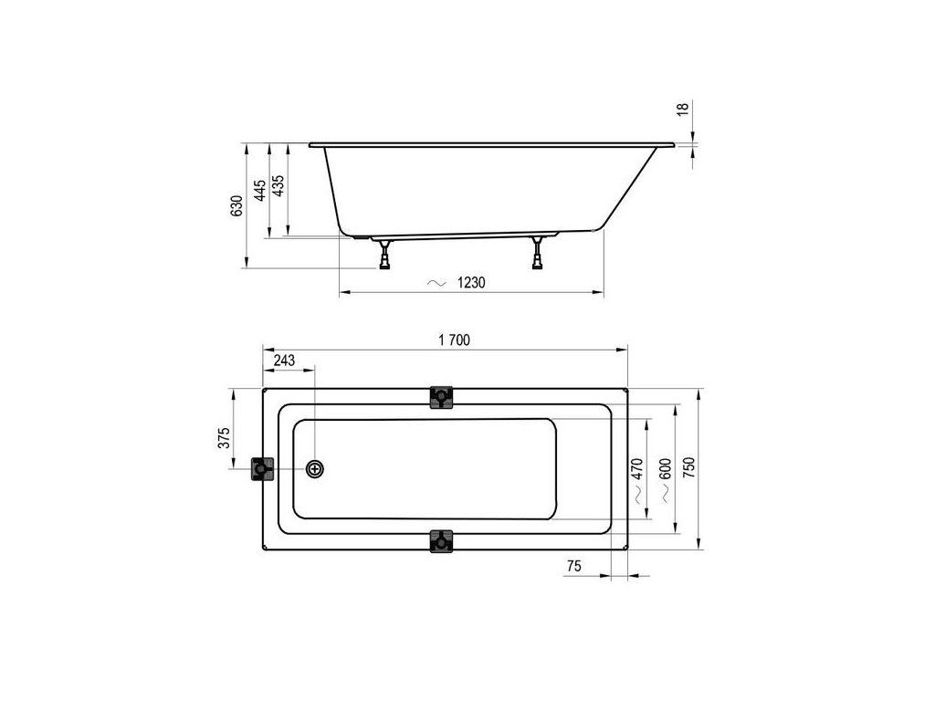 EBS Urban City Slim Obdélníková vana 170 x 75 cm bez noh, bílá