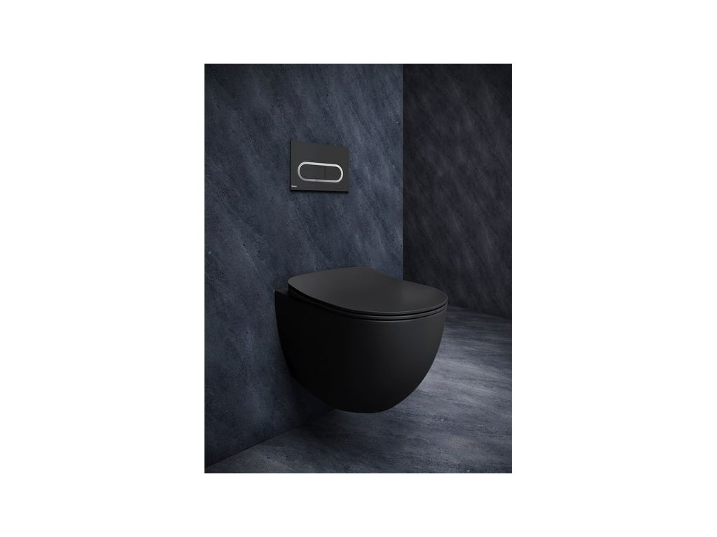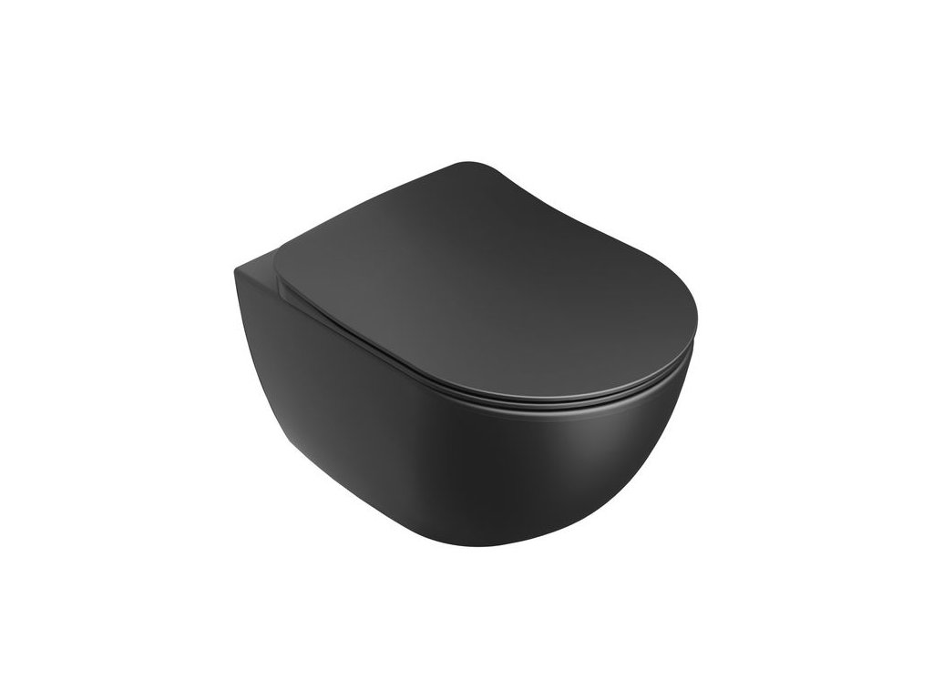 Elegantní černé keramické závěsné WC přidává do koupelny moderní a luxusní vzhled. Praktický závěsný design, který uvolňuje prostor a usnadňuje úklid. Tento WC splňuje nejvyšší standardy kvality a je vyroben z odolného keramického materiálu, který zajišťuje dlouhou životnost. Díky svému černému provedení přináší do interiéru koupelny sofistikovaný a moderní estetický prvek. Užijte si luxus a pohodlí s tímto stylovým černým keramickým závěsným WC.