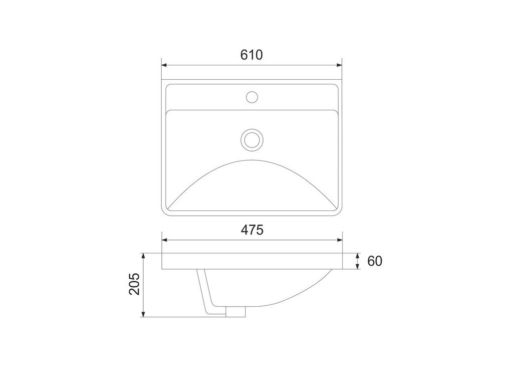 - keramické umyvadlo s otvorem pro baterii