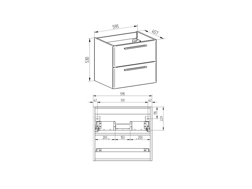 - vnitřní výška horního šuplíku je 14,3 cm a spodního šuplíku 22 cm