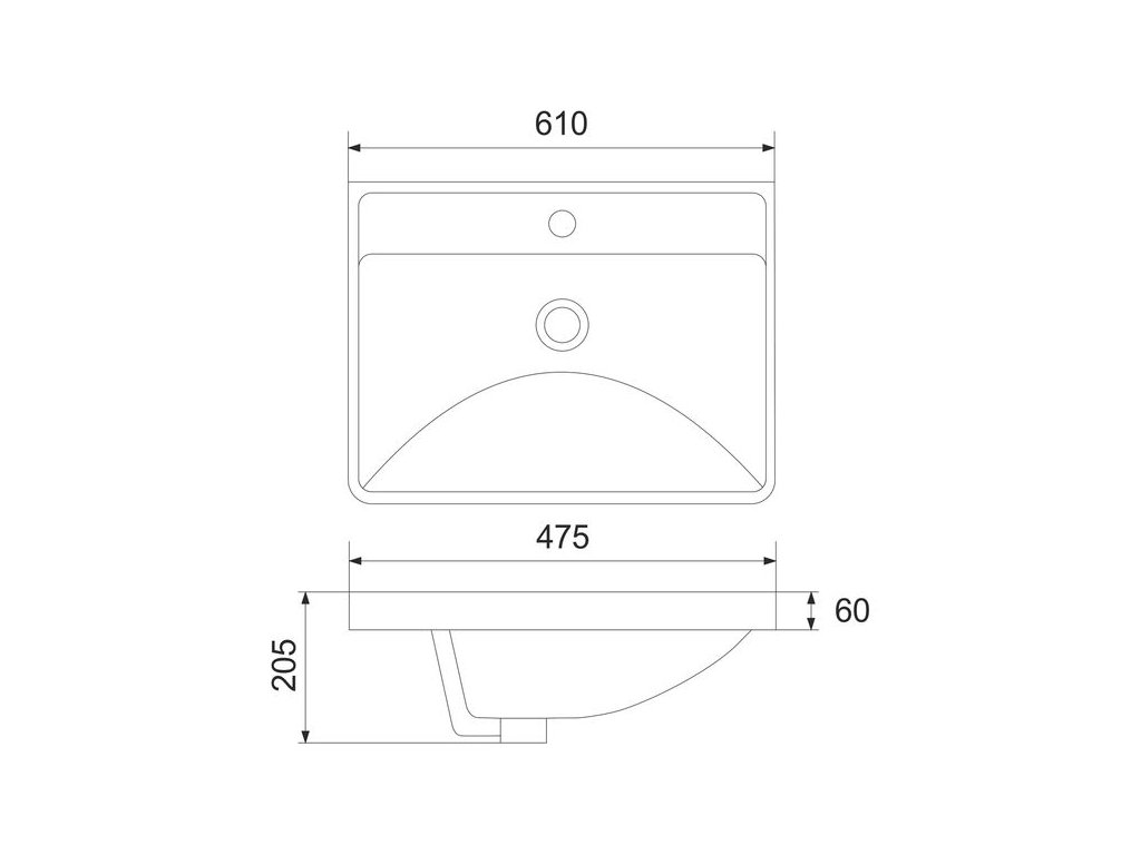 - keramické umyvadlo s otvorem pro baterii